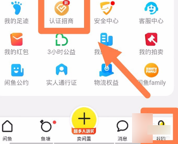 2、进入“我的”,单击“认证招商”,如下图所示。