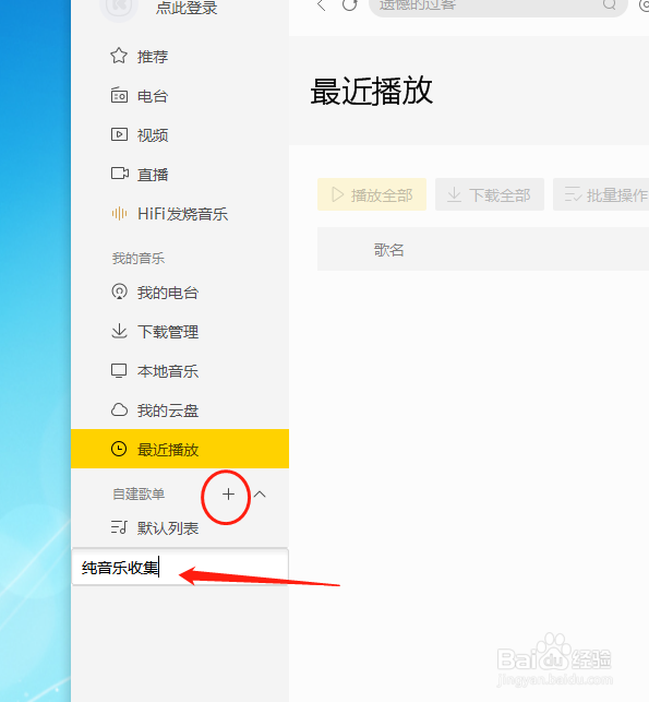 2/3点击加号,创建歌单,输入歌单名字,即可自建歌单。