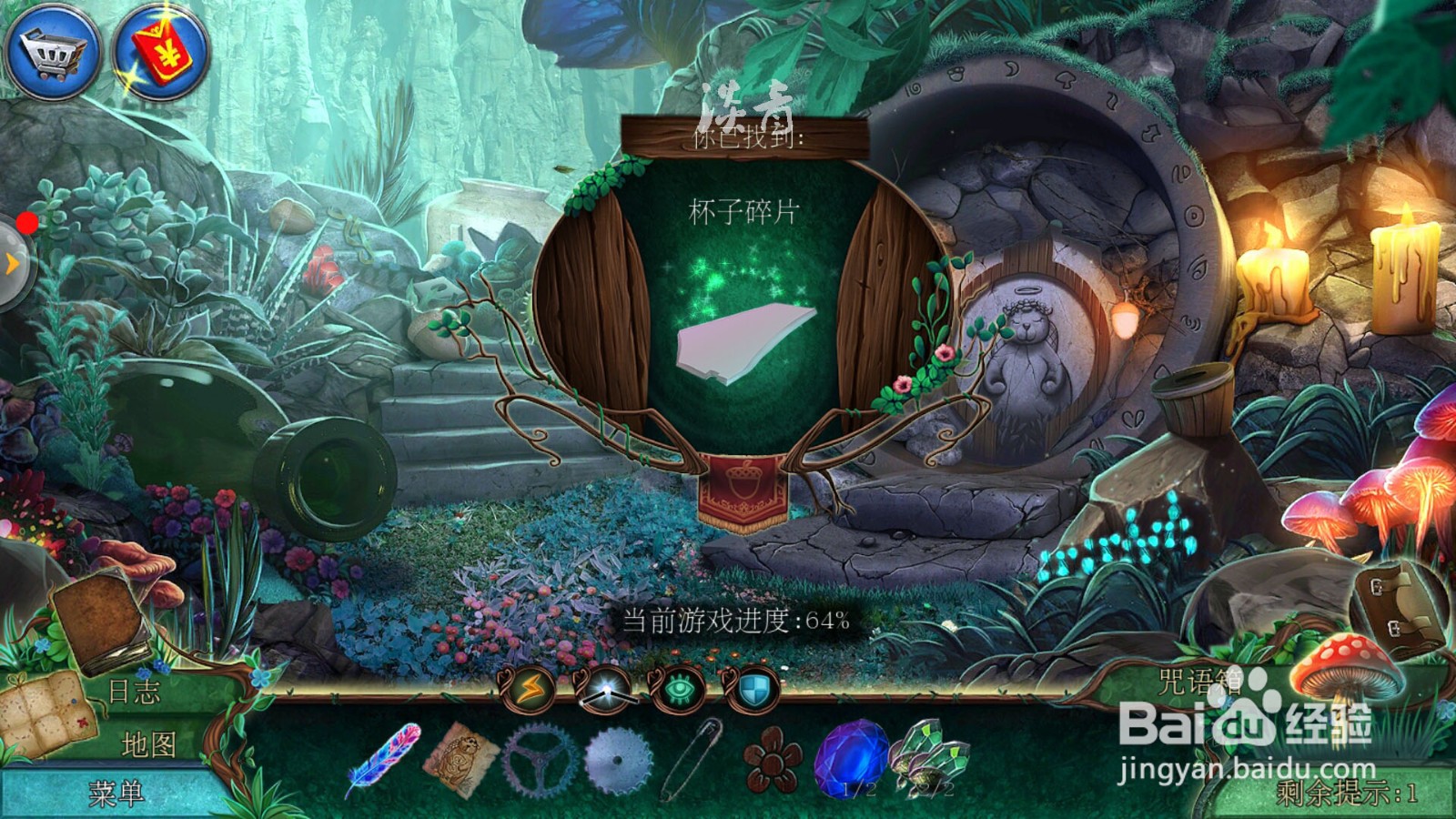 5/7点击台阶上的杂物,进入寻物小游戏:按照下列虚影找到相对应的物品;完成寻物小游戏拿到【杯子碎片】。