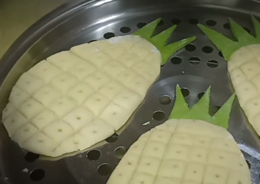 17、15分钟以后,美味又美观的菠萝馒头就制作完成了。