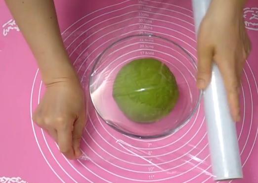 5、待揉成一个光滑的面团,就可以用保鲜膜将其封在容器中,等待发至两个面团大小。