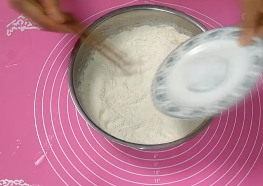 1、首先,在准备好的面粉中倒入适量的酵母,酵母的量可以适量的多一点,这样可以减少发面的时间。