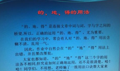 3、“得”后面的词语一般用来补充说明“得”前面的动作怎么样,结构形式一般为:动词(形容词)+得+补充、说明的词语。