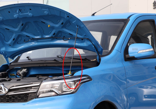 四、用支撑杆支撑起长安欧诺的引擎盖,确保支撑牢固,避免发生危险。