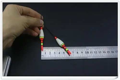 ④线浮漂:又叫多体漂、七星漂、蜈蚣漂等。多用禽类的翅膀羽毛制成,也可用圆形、椭圆形、塑料球串连而成。它灵敏度高于立式浮漂,在水底情况较复杂时深用线浮漂可减少调漂的麻烦。