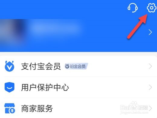 打开支付宝,在我的选项下点击右上角设置图标。
