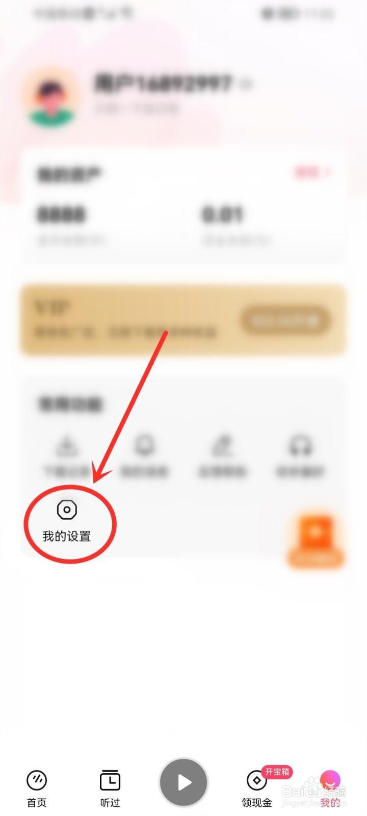2/4进入我的页面,点击“我的设置”图标。