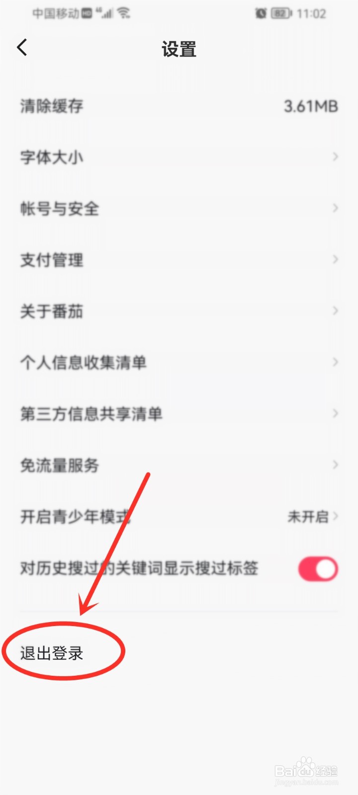 3/4进入到设置页面,点击“退出登录”选项。