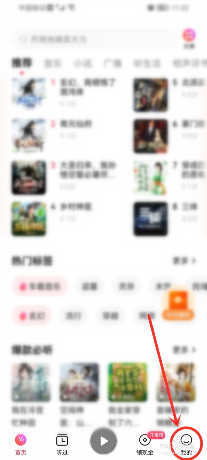 打开番茄畅听音乐版app首页,点击底部“我的”图标。