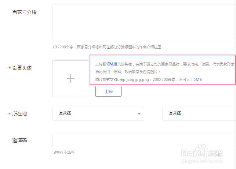 5/7选择与领域相关的头像上传,可以在注册之前制作好合适的头像,注意头像大小要小于5M。
