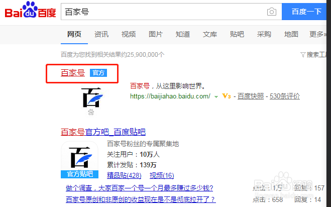 首先,在百度中搜索“百家号”,点击进入百家号官方网站。