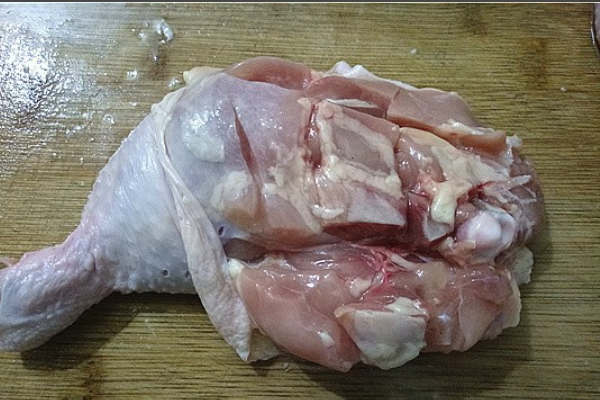 5、当有皮的那面烤的微焦了,就翻面,将肉的那面翻过来烤下,烤15分钟左右。
