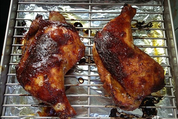 6、最后,将鸡腿再次翻过来,有皮的朝上,烤5-10分钟,烤到自己中意的程度就可以了。