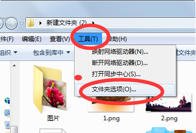 3、如果想直接查看文件扩展名,可以在文件夹的工具中点击“文件夹选项”。