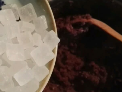 4、煮40分钟后,放入冰糖,搅拌均匀,继续小火煮15分钟。