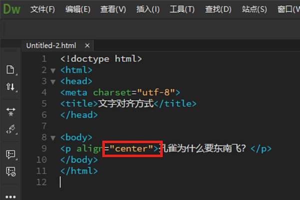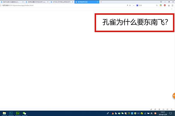 4.进一步设置以下文字的对齐方式,示例代码如下:p align=right孔雀为什么要东南飞?/p;