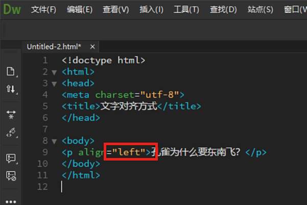 6.如果将对齐方式的代码改为“left”,如下图红框所示;