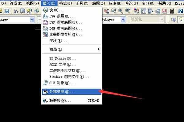 2、其次,完成上述步骤后,在打开的插入菜单栏中,选择下面的【外部参照】选项,如下图所示,然后进入下一步。