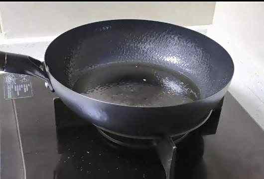 10、擦拭完后,放上灶台加热烘干,并加入花生油。