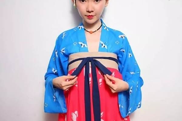 汉服低胸的款式为齐胸襦裙,两片式,上半身和下半身分开,上半身称上襦,下半身为裙,具体穿法如下: