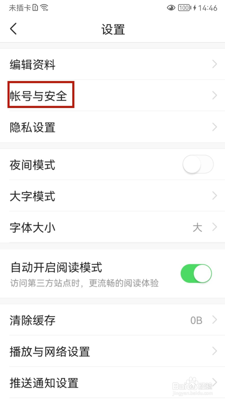 3/5在设置的界面点击帐号与安全选项,