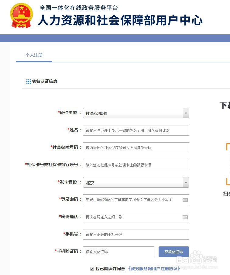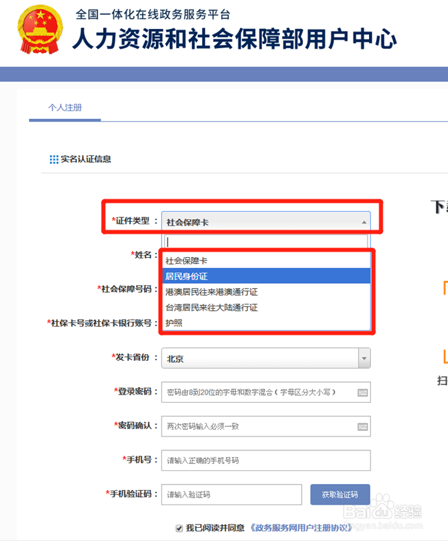 3/73.其中,“证件类型”可以从下拉菜单选择“社会保障卡”或者“居民身份证”等。