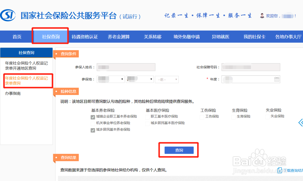 5/75.“社保查询”可以查询“个人权益记录单”等内容。