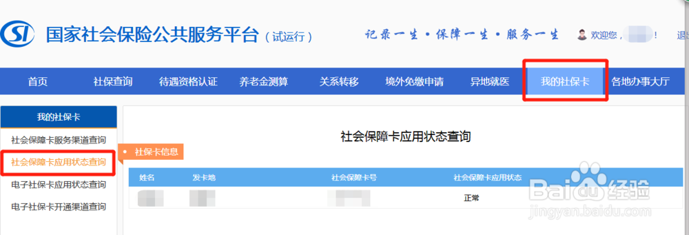 6/76.“我的社保卡”可以查询社保卡状态等内容。