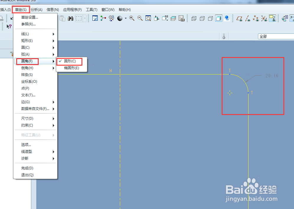 Proe中如何给草图倒圆角