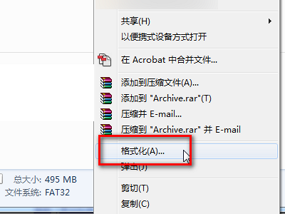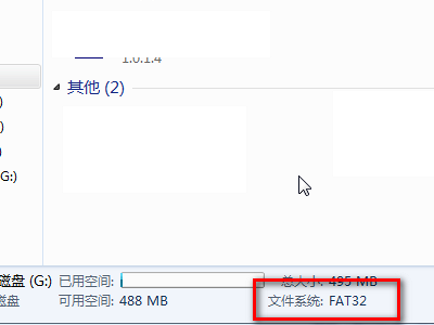 2、点击选定U盘,在下方可以看到当前U盘格式为FAT32格式,你的U盘或者是NTFS格式。说明汽车不识别这种格式。