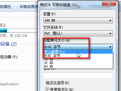 6、分配单元大小,可以选“默认”。