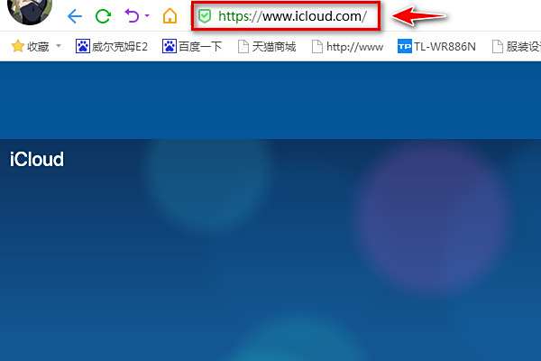1、打开浏览器,在地址栏中输入iCloud网址,回车键进入。