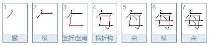 每的笔顺:撇、横、竖折/竖弯、横折钩、点、横、点。