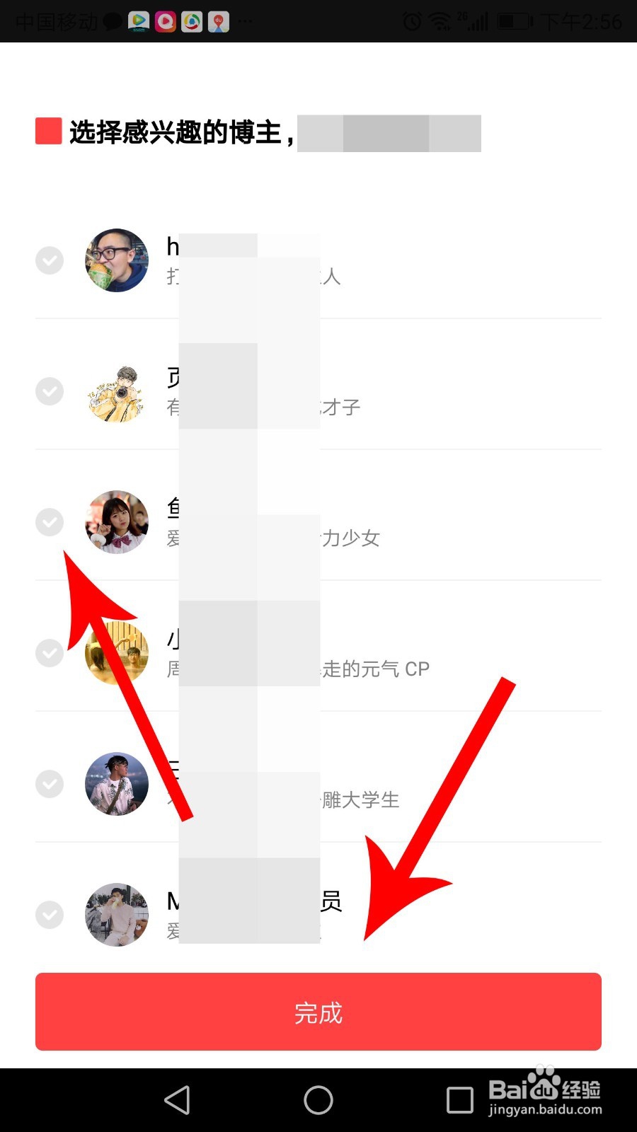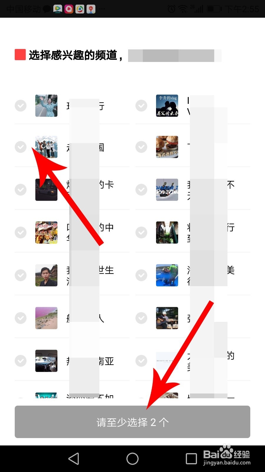 5/6完成账号登录以后在新打开页面中勾选两个频道,然后点击“继续”,接着在勾选博主后点击“完成”