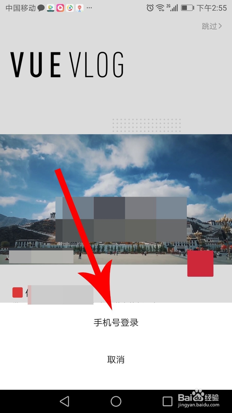 3/6这时vue vlog就会弹出两个选项,点击其中的“手机号登录”
