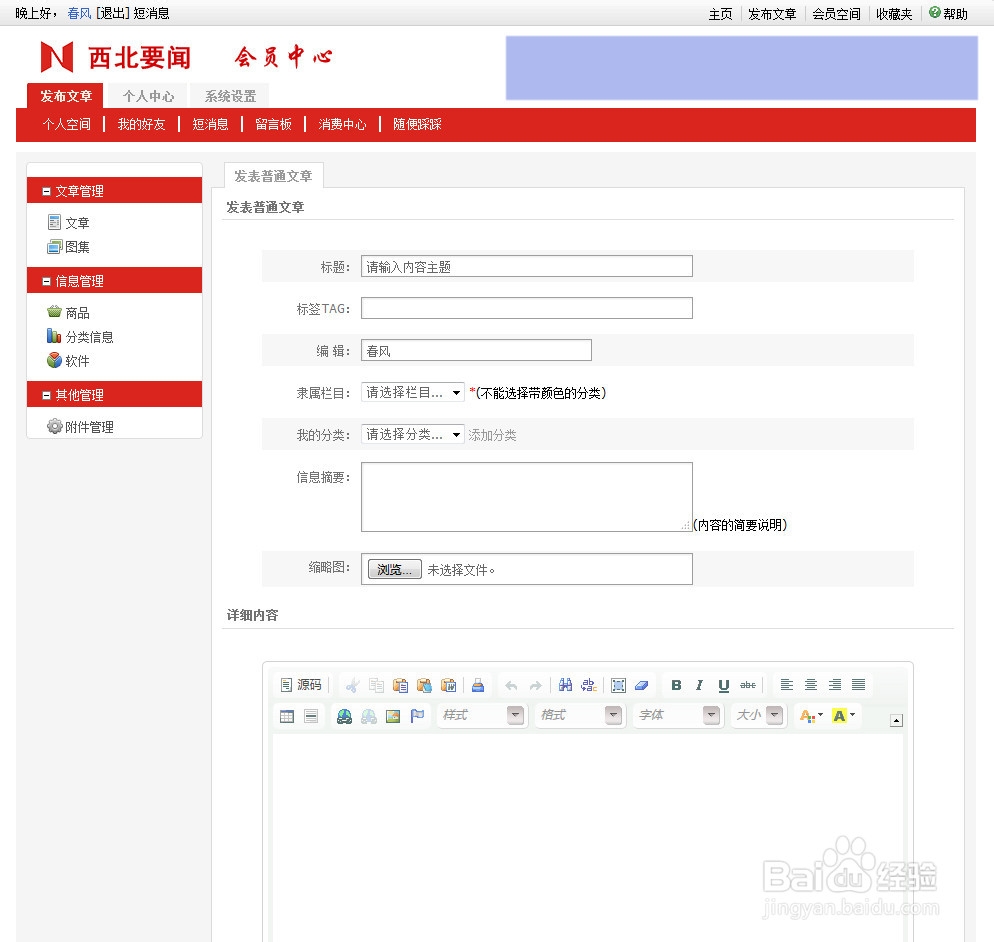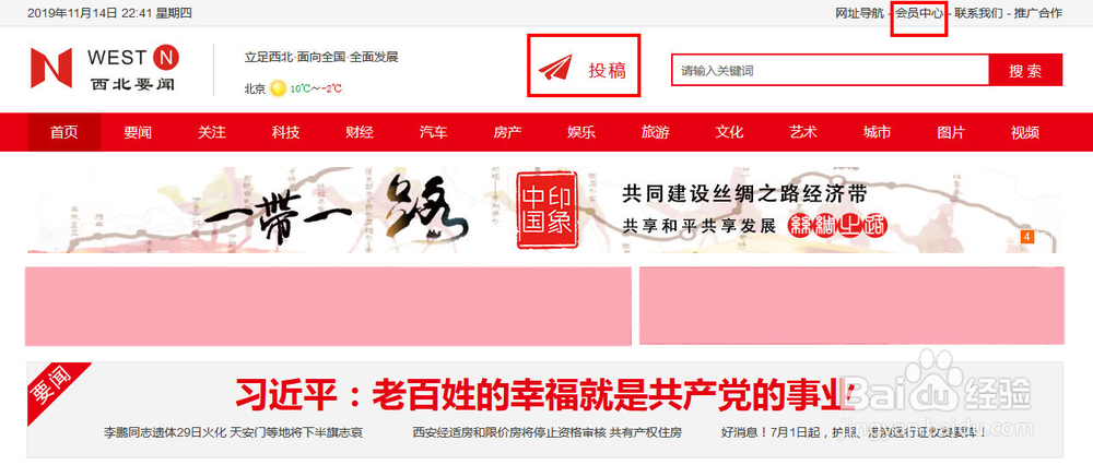 第一步:打开西北要闻网首页,点击首页最上方的“投稿”或“会员中心”按钮
