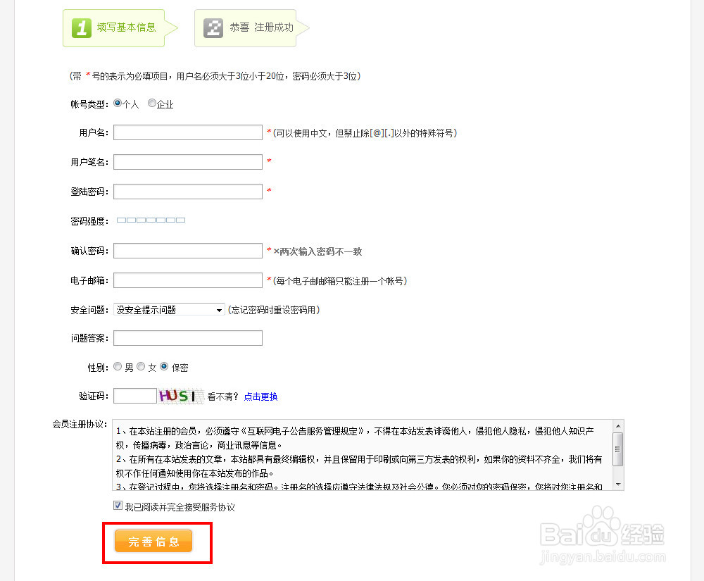 3/7第三步:填写注册信息点击“完善信息”按钮