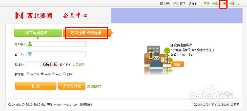2/7第二步:点击“还没注册 点击这里”或者最上方的“注册”按钮