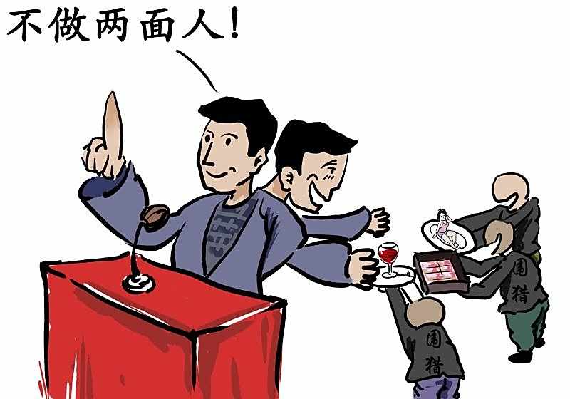 党内有一些“两面人”很会伪装,喜欢表演作秀,表里不一、欺上瞒下,说一套、做一套,台上一套、台下一套,当面一套、背后一套。