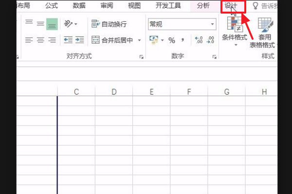 3、在EXCEL表格的上方工具栏中点击“设计”选项,进入下一页面。