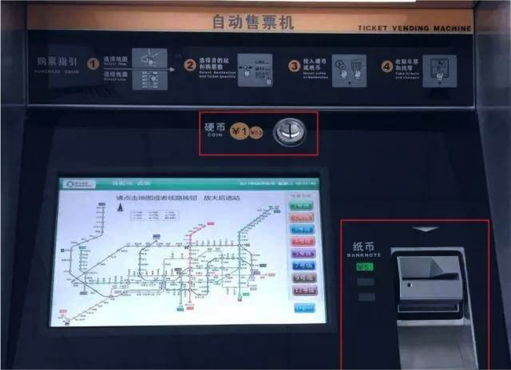 在自动售票机触摸屏路线图上选择目的地车站对应圆圈,或者在窗口买票。