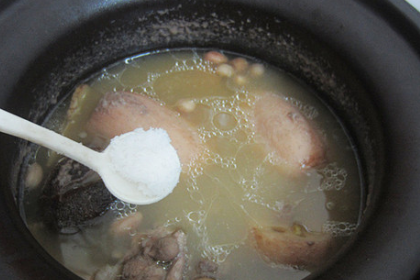 10、两小时过后,龙骨汤煲好后,加入适量食盐调叶即可。