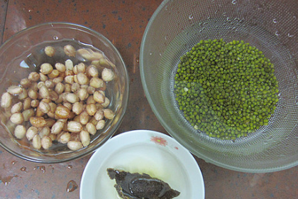 1、绿豆、花生洗净,浸泡3小时,陈皮洗净浸泡半小时。