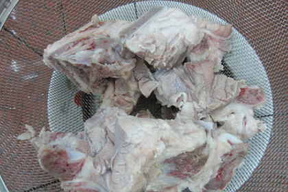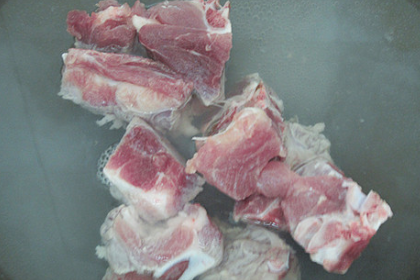 2、锅内烧开热水,把龙骨焯一下,捞起。