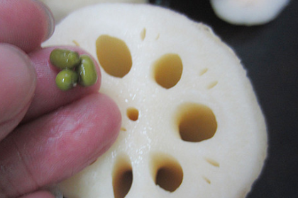 莲藕汤可以放绿豆。需要提前准备的材料有:花生30克、绿豆70克、龙骨450克、藕3节、清水12碗、食盐少许、陈皮1块。