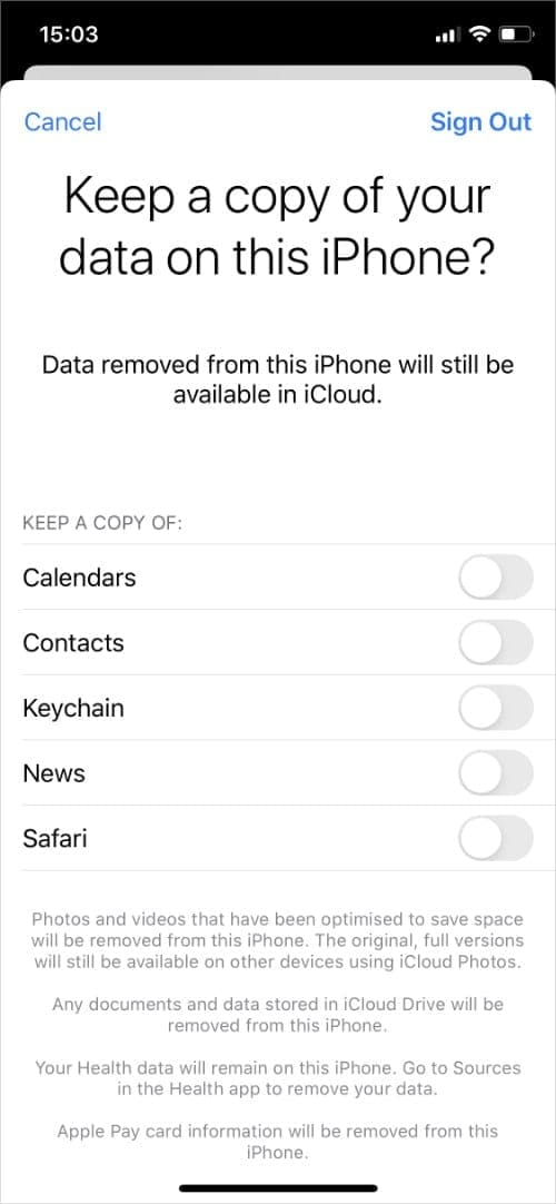 如果你不想使用iCloud,可以很容易地从设备设置中选择退出并关闭它。当你禁用iCloud时,它会删除该设备对iCloud的访问,但不会删除苹果服务器上的任何数据。我们将在本文末尾向你展示如何做到这一点。