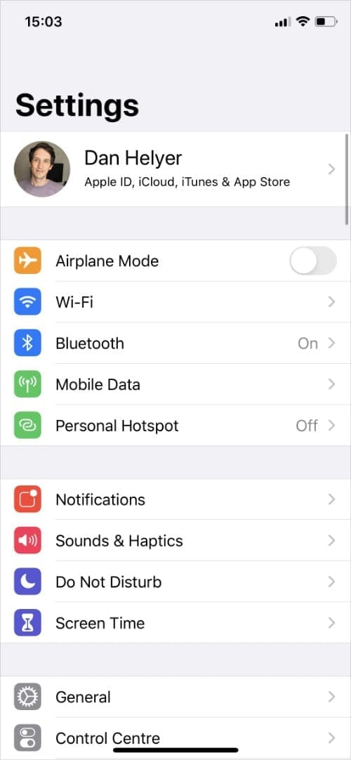 在iPhone上1、打开“设置”应用程序,然后点击屏幕顶部的。