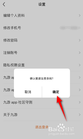 3/3第三步,然后点击确定。这样便可以退出九游的登录。