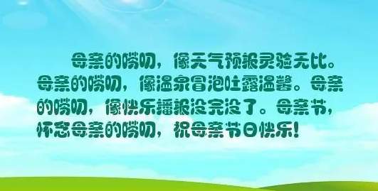 3、亲爱的,是您抚养我长大,是您教我爱国家,是您鼓励我向前,是您牵挂在身边,今日母亲节,祝您永远,永远幸福。