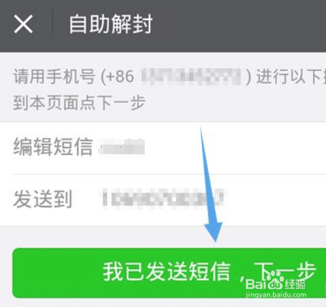 按照上面的提示编写短信内容,发送短信后,点击“我已发送”。